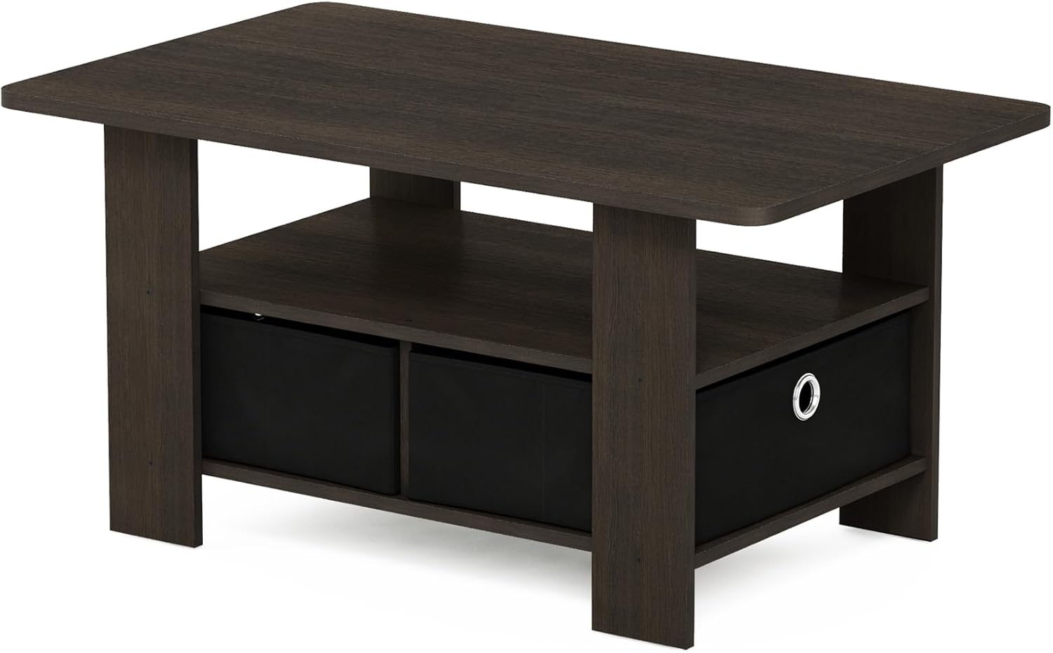 A compact and stylish rectangular coffee table with bin storage and open shelf — perfect for living rooms, apartments, and small spaces.